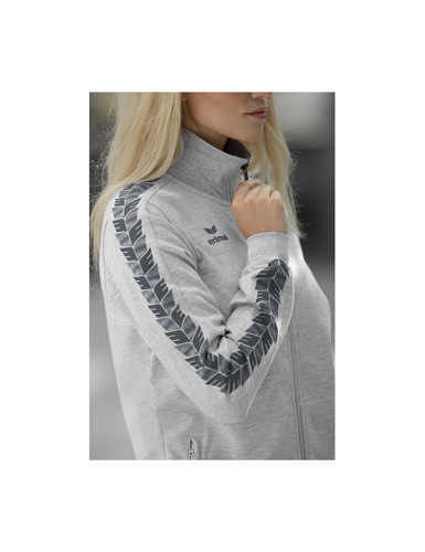 Bequemer, strapazierfähiger Material-Mix; Stehkragen; Rippbündchen an Ärmel und Saum; Seitliche Reißverschlusstaschen; ERIMA Schwingen-Print auf Schulter und Ärmeln; Taillierter Schnitt