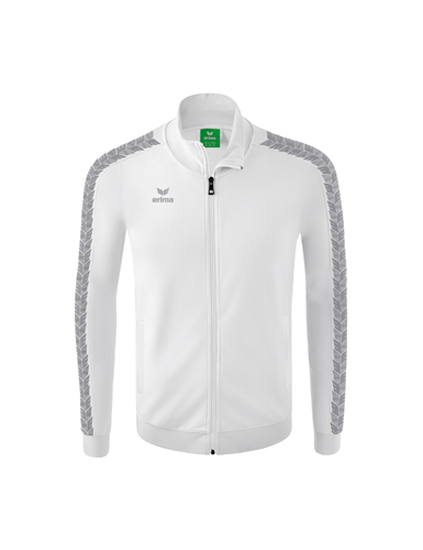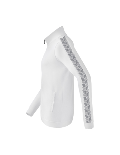 Bequemer, strapazierfähiger Material-Mix; Stehkragen; Rippbündchen an Ärmel und Saum; Seitliche Reißverschlusstaschen; ERIMA Schwingen-Print auf Schulter und Ärmeln