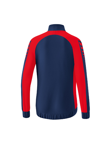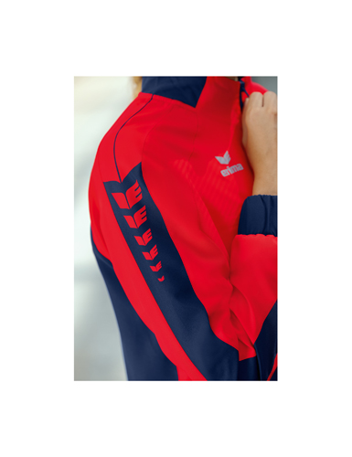 Leichtes, elastisches Funktionsmaterial; Elastische Bündchen an Ärmel und Saum; Stehkragen; Seitliche Reißverschlusstaschen; Ohne Innenfutter; ERIMA Schwingen-Design auf der Schulter; Taillierter Schnitt