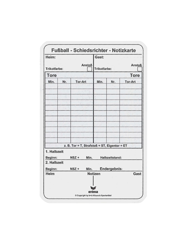 Vorgedruckter Schreibkarton 12 x 8 cm; Wichtiger Bestandteil zum Auffüllen des Schiedsrichter-Sets und des Mini-Sets; Set mit 50 Karten